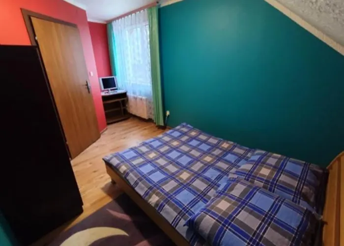 Domek,Nocleg Pod Skrzycznym Szczyrk位于Kaimowka Ski Lift旁边. 该别墅设有4间卧室和2间浴室;厨房配备微波炉,电子热水壶和冰箱,该住宿给旅客提供了一共舒适的环境.